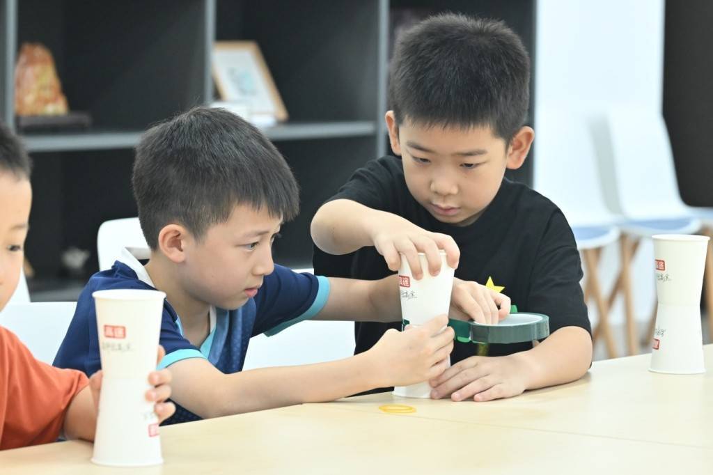 9月21日上午,在专业老师指导下,孩子们亲手制作马格努斯双杯滑翔机,通过弹性势能的瞬间释放,观察飞行器在空中划出的独特轨迹。孩子们在一次次调试发射角度与橡皮筋张力的过程中,体验空气动力学与能量转换的奥秘,成为驾驭气流的“小滑翔家”。